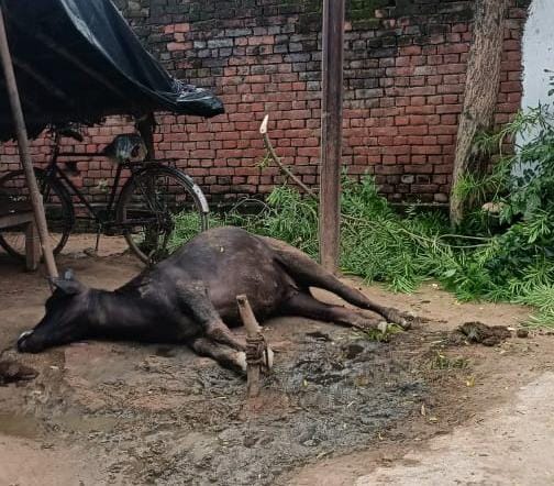 बस्ती। हर्रैया थाना क्षेत्र में नरायनपुर तिवारी गांव हाई वोल्टेज विद्युत पोल में उतरे करंट की चपेट में आने से बगल में बधी भैस की मौत हो गई।