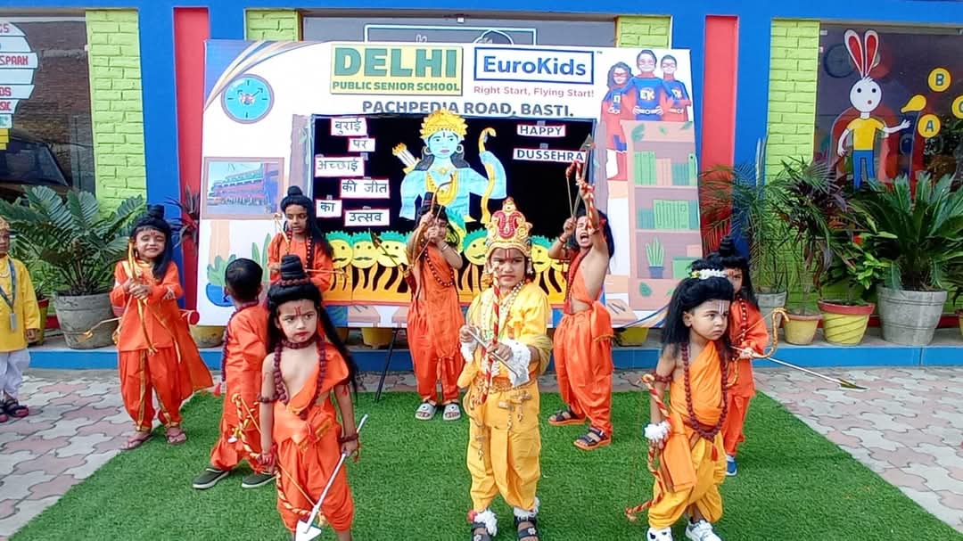 यूरो किड्स प्री स्कूल पचपेड़िया रोड बस्ती में बच्चों द्वारा रामलीला पर आधारित फैंसी ड्रेस प्रतियोगिता और रामलीला का मंचन किया गया जिसमें बच्चों ने प्रभु श्री राम ,माता सीता, और लक्ष्मण जी भरत जी शत्रुघ्न जी तथा ऋषि मुनियों की वेश भूषा बनाकर रामचरित मानस का संक्षिप्त नाट्य मंचन किया। उनके नाट्य मंचन की मोहक प्रस्तुति से सभी मंत्र मुग्ध हो गए ,बाल कलाकारों ने सभी को कार्यक्रम समापन तक कुर्सियों से मोहक प्रस्तुति द्वारा बांधे रखा,