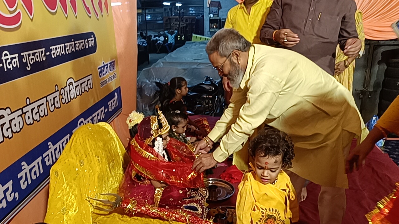रौता चौराहा स्थित शनैश्चराय मंदिर पर अष्टमी के अवसर पर कन्या पूजन के साथ भव्य आरती का हुआ आयोजन ।रौता चौराहा स्थित शनैश्चराय मंदिर पर नवरात्र के अष्टमी के अवसर पर कन्या पूजन कार्यक्रम का आयोजन किया गया। कन्या पूजन कार्यक्रम में मुख्य यजमान के रूप में जनपद के वरिष्ठ समाजसेवी राघवेंद्र प्रताप सिंह, जेपी तिवारी,राकेश दुबे शामिल हुए ।कन्या पूजन कार्यक्रम के बाद मंदिर परिसर में शस्त्र पूजन का कार्यक्रम आयोजित किया गया जिसमें मुख्य यजमान के रूप में अमरनाथ सिंह,राकेश सिंह,दीपांशु सिंह मौजूद रहे ।इसके पश्चात भव्य आरती का आयोजन किया गया जिसमें सैकड़ो लोगों ने प्रतिभाग किया। मंदिर के पुजारी पंडित सरोज मिश्रा ने बताया कि प्रत्येक वर्ष अष्टमी के अवसर पर कन्या पूजन के साथ आरती का आयोजन किया जाता है। आरती के बाद लोगों में प्रसाद वितरण किया गया। कार्यक्रम में मुख्य रूप से जगदीश शुक्ला, हेमंत मिश्रा, सतेंद्र श्रीवास्तव,आशीष श्रीवास्तव, भावेश पांडे,राजन गुप्ता, अजय श्रीवास्तव नगर पालिका अध्यक्ष प्रतिनिधि अंकुर वर्मा सहित सैकड़ो लोग मौजूद रहे।