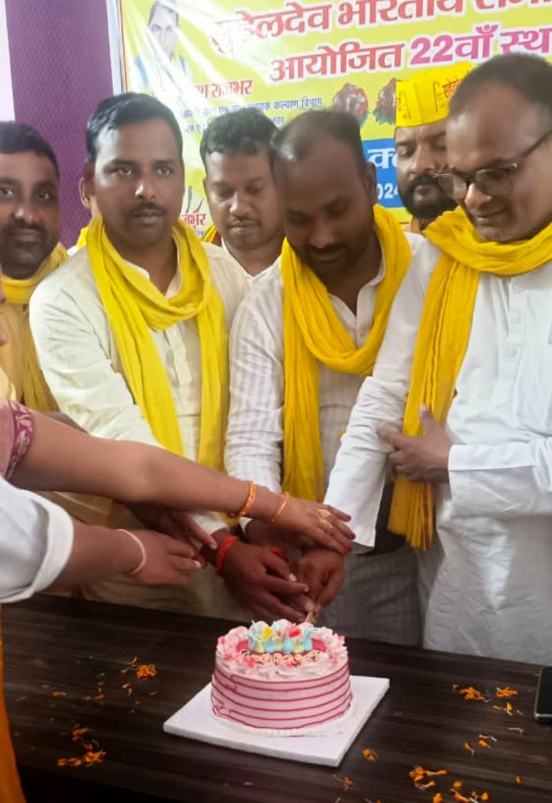बस्ती । सुहेलदेव भारतीय समाज पार्टी का 22 वां स्थापना दिवस प्रेस क्लब सभागार में केक काटकर मनाया गया। आयोजक जिलाध्यक्ष मनोज राजभर और जिला प्रमुख महासचिव राजेश राजभर ने संचालन करते हुये पार्टी की विकास यात्रा पर विस्तार से प्रकाश डाला। मुख्य अतिथि राष्ट्रीय सचिव विनोद कुमार राजभर ने कहा कि 27 अक्टूबर 2002 को सुहेलदेव भारतीय समाज पार्टी की स्थापना किया गया। लगातार 22 वर्षों से शोषित, वंचित, पिछड़ों व दलितों व अन्य समाज के हक हिस्सा के लिए रात दिन संघर्ष का क्रम जारी है।