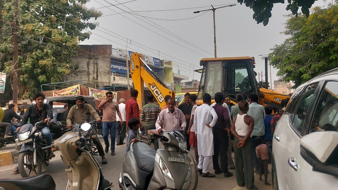 बस्ती के शास्त्री चौक पर नगर पालिका के जेसीबी चालक द्वारा फल दुकानदारों के ठेले पर जेसीबी चढ़ाए जाने से काफी हंगामा हुआ घटना की सूचना मिलने पर स्थानीय पुलिस ने मौके पर पहुंचकर मामले को शांत कराया आपको बताते चले जेसीबी चालक द्वारा फल के कई ठेले को ठोकर मार दिया स्थानीय लोंगो का कहना है कि जेसीबी चालक नशे की हालत में था जिससे यह घटना घटित हुई इस घटना को लेकर स्थानीय लोगों ने जेसीबी चालक के खिलाफ कड़ी कार्रवाई करने की मांग भी की वहीं दूसरी तरफ नगर पालिका प्रशासन द्वारा अतिक्रमण हटाए जाने को लेकर स्थानीय नागरिकों में रोष व्याप्त है उनका कहना है कि बिना नोटिस के हम लोगों के ऊपर बुलडोजर की कार्रवाई की जा रही है।