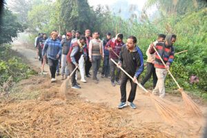 बस्ती, 30 नवम्बर। नगर पंचायत नगर में हर माह स्वच्छता अभियान एक अनुकरणीय पहल है। स्वच्छ नगर से ही स्वस्थ नगर और समृद्ध नगर की कल्पना साकार हो सकेगी। आज संत रविदास नगर वार्ड में आयोजित विशेष स्वच्छता अभियान में सम्मिलित होने पहुंचे पूर्व ब्लॉक प्रमुख और भाजपा नेता राना दिनेश प्रताप सिंह ने उक्त बातें कहीं। उन्होंने आदर्श नगर पंचायत नगर को देश का एक मॉडल नगर पंचायत बनाने में सभी से सहयोग की अपील किया। इस अवसर पर श्री राना ने जहां स्वयं झाड़ू लगाकर नागरिकों को जागरूकता का संदेश दिया वहीं सैकड़ों महिलाओं को निःशुल्क डस्टबिन भी वितरित किया। उन्होंने कहा कि नगर देश की इकलौती नगर पंचायत है जहां प्रत्येक महीने के अन्तिम शनिवार को एक वार्ड में विशेष स्वच्छता अभियान चलाया जाता है। इसी प्रकार प्रत्येक महीने के दूसरे मंगलवार को योग दिवस और वृद्ध जन सम्मान आयोजित होता है। सोमवार को नगर पंचायत कार्यालय पर साप्ताहिक जनता दर्शन, कार्य दिवस पर कंट्रोल रूम की सुविधा सहित दर्जनों जनहितकारी योजनाएं संचालित कर नगर पंचायत नगर देश में अपनी अलग पहचान बना चुकी है।