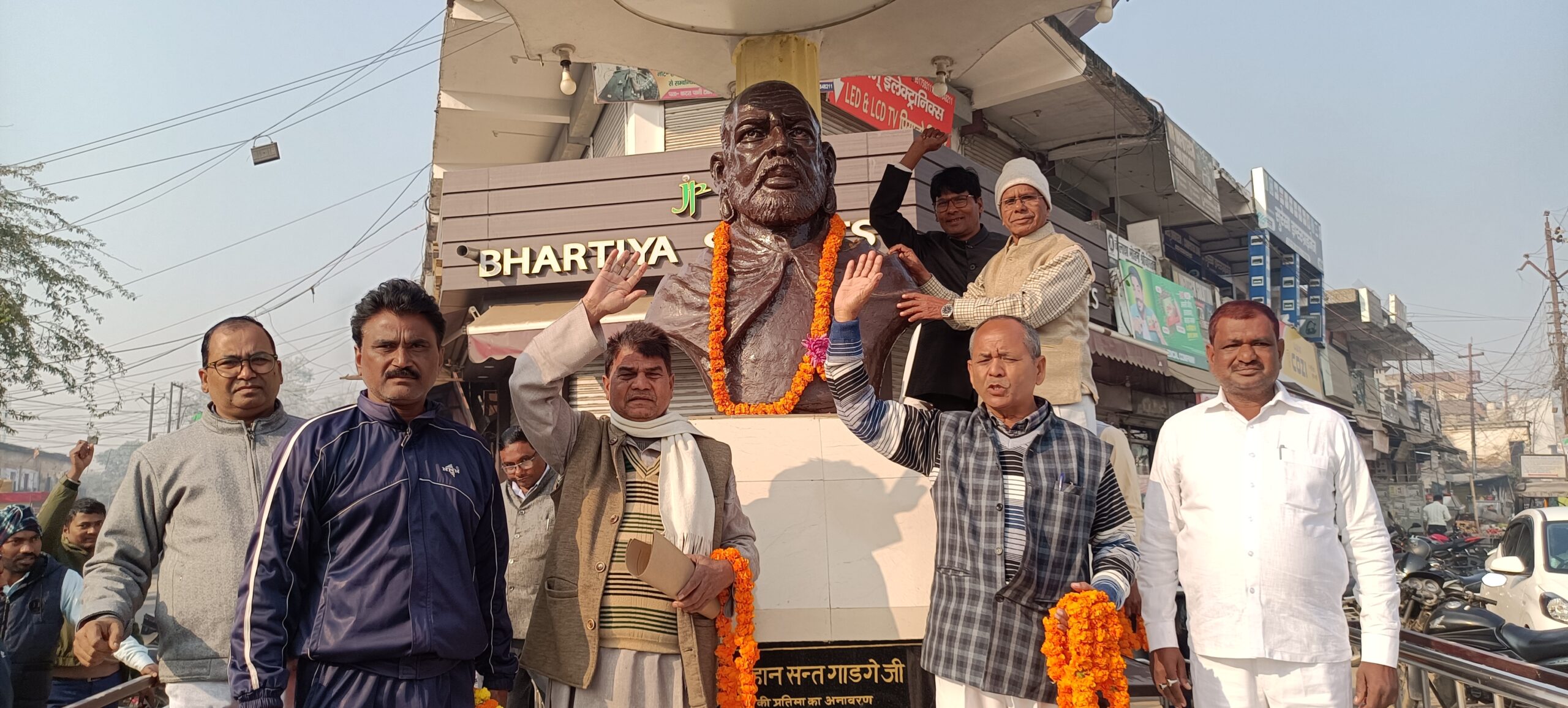 संरक्षक शिवराम कन्नौजिया, विश्राम राव, उमाशंकर गौतम, राजू कन्नौजिया, उदयभान, हीरालाल वरूण, बुद्धि प्रकाश, राम नरेन्द्र, आर.के. आनन्द, शिवपूजन, साधूशरन आर्य आदि  ने कहा कि मानवता के सच्चे हितैषी, सामाजिक समरसता के द्योतक यदि किसी को माना जाए तो वे थे संत गाडगे। बाबा गाडगे का जन्म 23 फरवरी 1876 को महाराष्ट्र के अमरावती जिले के अंजनगांव सुरजी तालुका के शेड्गाओ ग्राम में एक धोबी परिवार में हुआ था। उनका पूरा नाम देबूजी झिंगरजी जानोरकर था। वह एक घूमते फिरते सामाजिक शिक्षक थे। गाडगेबाबा सिर पर मिट्टी का कटोरा ढककर और पैरों में फटी हुई चप्पल पहनकर पैदल ही यात्रा किया करते थे। और यही उनकी पहचान थी।
