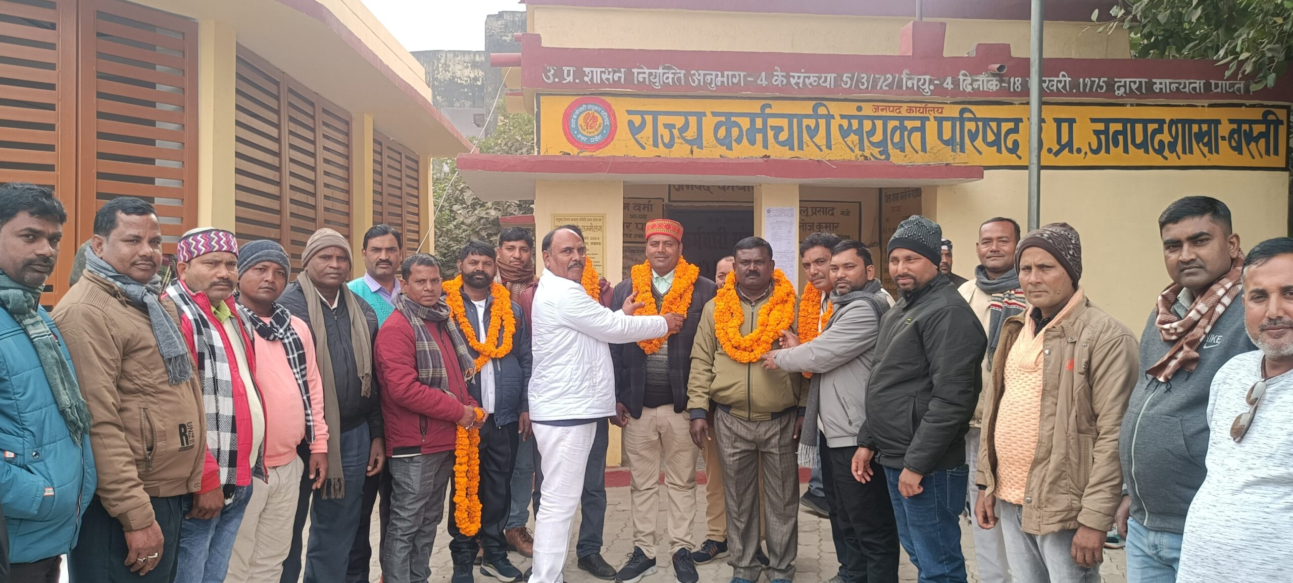 रविवार को उत्तर प्रदेश पंचायती राज ग्रामीण सफाई कर्मचारी संघ बस्ती द्वारा चुनाव प्रक्रिया के दौरान बलराम यादव निर्विरोध सदर ब्लॉक अध्यक्ष घोषित हुए। कलेक्ट्रेट परिसर स्थित राज्य कर्मचारी संयुक्त परिषद कार्यालय पर सुबह से ही नामांकन प्रक्रिया प्रारंभ हुई इसमें सदर ब्लाक के सभी पदाधिकारी निर्विरोध निर्वाचित हुए। जिसमें अध्यक्ष पद पर बलराम यादव मंत्री पद पर बुधई प्रसाद ,कोषाध्यक्ष दीपक कुमार, संगठन मंत्री सुनील कुमार, लेखा संप्रेक्षक शशिकांत विश्वकर्मा निर्विरोध निर्वाचित हुए। इसके बाद सफाई कर्मचारियों ने सभी निर्विरोध निर्वाचित पदाधिकारी का फूल मालाओं के साथ भव्य स्वागत किया। इसके बावत विस्तार से जानकारी देते हुए उत्तर प्रदेश पंचायती राज ग्रामीण सफाई कर्मचारी संघ के जिला अध्यक्ष अजय कुमार आर्य ने बताया कि आज नामांकन प्रक्रिया के दौरान सदर ब्लॉक के सभी पदाधिकारियों के सामने किसी अन्य ने अपना नामांकन नहीं भरा जिससे सभी पद निर्विरोध निर्वाचित हुए, उन्होंने कहा कि चुनाव प्रक्रिया को पूरी तरह से पारदर्शी बनाया गया है किसी भी प्रकार का भेदभाव चुनाव प्रक्रिया में नहीं होगा ।इस दौरान राजेश कुमार, शिवमंगल पाण्डेय, मनोज कुमार चौहान, रुद्र नारायन रुदल, संतोष कुमार, अमित कुमार, मेराज अली, पंचराम, सुनील कुमार, सूर्य प्रकाश पाण्डेय, चंद्रकेश, आनंद दास, अजय सिंह, सूरज गौड़, धनंजय गौड़, मेवाराम शिवकुमार के साथ अन्य कर्मचारी मौजूद रहे।