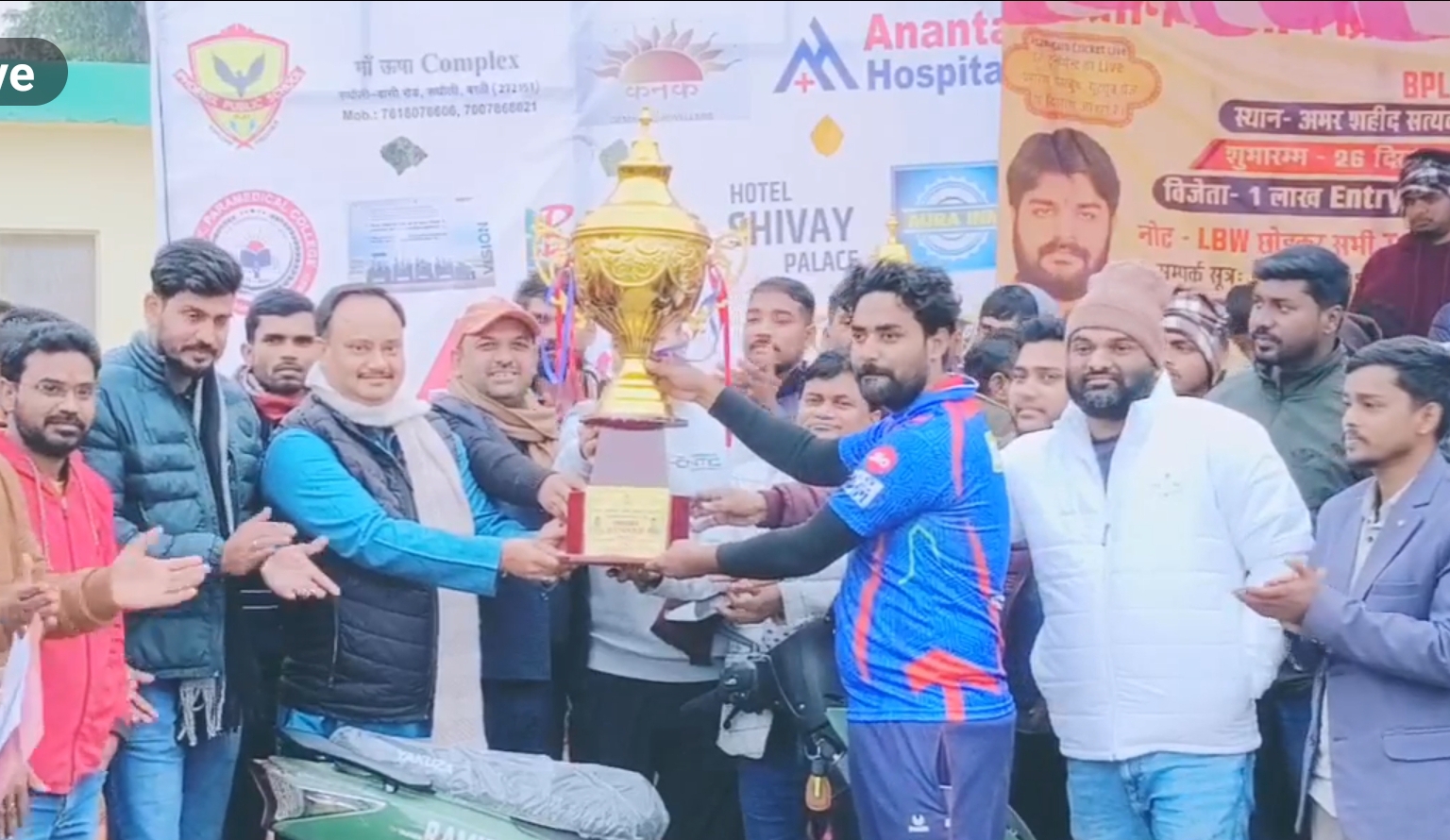 जेता को चमचमाती ट्रॉफी वरिष्ठ समाजसेवी डॉ वी के वर्मा जी के द्वारा दिया गया।नगर पालिका बस्ती के अध्यक्ष प्रतिनिधि के द्वारा मैन ऑफ द मैच ट्राफी दिया गया।मैन ऑफ़ द सीरीज बैट व ट्रॉफी दिया गया।आयोजन जन उत्थान चैरिटेबल ट्रस्ट के संस्थापक निदेशक इं. अंशुल पटेल, पंकज चौधरी व राहुल पाल ने अतिथियों का स्वागत कर खिलाड़ियों से परिचय कराया।सेमी फाइनल मैच एसीएल आजमगढ़ व केडीसी 11 के बीच खेला गया।टास जीतकर एसीएल आजमगढ़ की टीम ने पहले बल्लेबाजी करते हुए निर्धारित आठ ओवरों में 118 रन का लक्ष्य रखा जिसमें सलमान ने सर्वाधिक 35 रनों की पारी खेली लक्ष्य का पीछा करती हुई केडीसी की टीम निर्धारित 8 ओवरों में 90 रन ही बना सकी।और आजमगढ़ की टीम फाइनल में जगह बनाई।फाइनल मैच एसीएल आजमगढ़ और नूरी कलेक्शन बेवां के बीच खेला गया।टॉस जीतकर एसीएल स्पोर्टस आजमगढ़ की टीम ने पहले बल्लेबाजी करते हुए निर्धारित आठ ओवरों में 100 रन बनाकर के 101 रन का लक्ष्य रखा जिसमें फैसल ने सर्वाधिक 27 रनों की पारी खेली।लक्ष्य का पीछा करती हुई नूरी कलेक्शन बेवां की टीम निर्धारित आठ ओवरों में मात्र 78 रन ही बना सकी। और फाइनल मैच एसीएल आजमगढ़ की टीम ने मैच अपने नाम कर लिया।अंपायर अमजद आलम , लाइव प्रसारण आफताब, स्कोरर जलमणि चौहान, कॉमेंटेटर पुष्पेश पांडेय,अली, अनिल पटेल, अमन, इं सुरेंद्र वर्मा, शिव वर्मा, कवि चंद्र मोहन श्रीवास्तव समेत तमाम लोगों ने सहयोग किया। व बड़ी संख्या में दर्शक उपस्थित रहे।