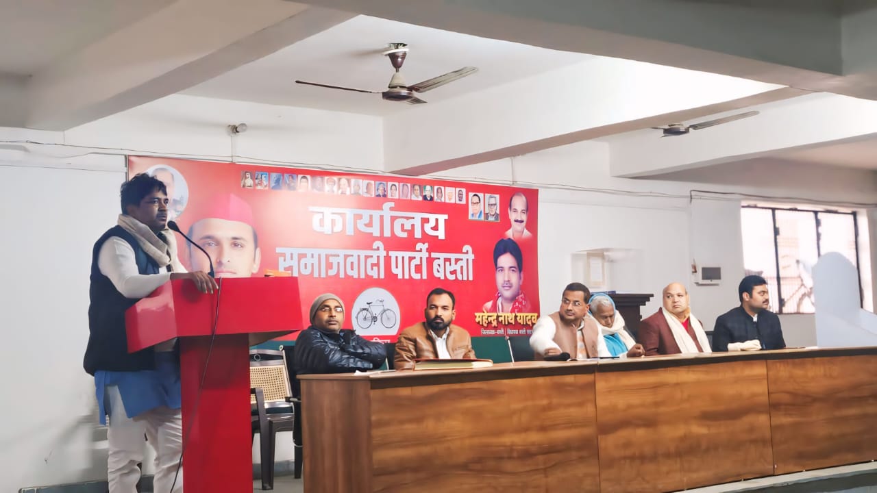 बैठक को सम्बोधित करते हुये सपा जिलाध्यक्ष एवं बस्ती सदर विधायक महेन्द्रनाथ यादव ने कहा कि समाजवादी पार्टी पदाधिकारी और कार्यकर्ताओं का दायित्व है कि वे निरन्तर जनता के बीच बने रहें और उनकी समस्याओं के निराकरण का प्रयास करें। कहा कि समाजवादी पार्टी के नीति, कार्यक्रमों को जनता से जोड़ने के साथ ही दवाई, पढाई, विकास के मोर्चो पर अपने-अपने क्षेत्रों में निरन्तर संघर्ष को जारी रखने के साथ ही राष्ट्रीय अध्यक्ष अखिलेश यादव के मार्गदर्शन में पार्टी की मजबूती में जुट जाय।