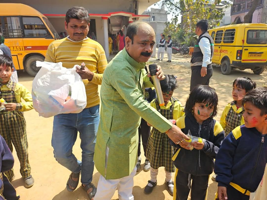 बस्ती जनपद के मालवीय रोड पर स्थित सीएमएस विद्यालय में होली के मद्देनजर छात्र-छात्राओं और अध्यापकों ने होली का त्यौहार बड़े ही हर्षोल्लास के साथ मनाया गया।इस अवसर पर विद्यालय के प्रबंधक अनूप खरे ने बच्चों को पिचकारी भी गिफ्ट की इसके बावत जानकारी देते हुए विद्यालय के प्रबंधक अनूप खरे ने बताया कि आपसी भाईचारे का प्रतीक होली का त्यौहार विद्यालय परिवार काफी वर्षों से मानता रहा है और बच्चों के साथ होली खेलने का एक अपना ही मजा है इस अवसर पर विद्यालय की प्रधानाचार्या नूपुर त्रिपाठी सहित विद्यालय के अन्य शिक्षक और शिक्षकाये मौजूद रहे।