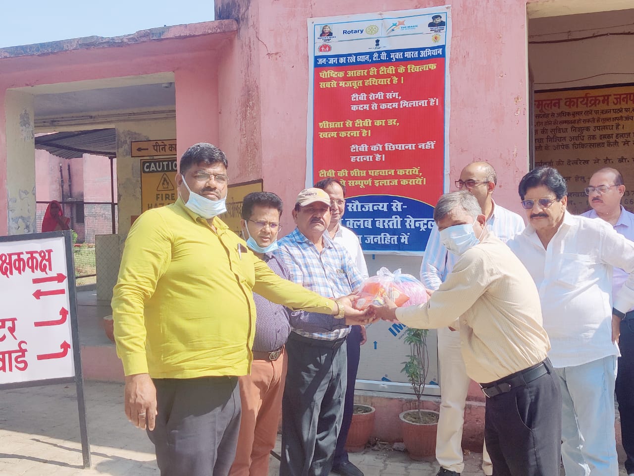 दिनांक 15 अप्रैल 2025 टीवी निश्चय दिवस के अवसर पर छह रोग हॉस्पिटल बस्ती पर रोटरी क्लब बस्ती सेंट्रल के द्वारा गोद लिए गए टीवी मरीजों में पौष्टिक पोटली का वितरण किया गया गोद लिए गए 11 मरीजों में पोटली का वितरण किया गया इस अवसर पर रोटरी क्लब बस्ती सेंट्रल के के रोटेरियन मुनीरूद्दीन अहमद रोटेरियन राजेश कुमार ओझा रोटियां मनीष कुमार सिंह टीवी चिकित्सालय के चिकित्सक डॉक्टर एफ हुसैन डॉक्टर रविंद्र कुमार वर्मा डिस्ट्रिक्ट कोऑर्डिनेटर अखिलेश चतुर्वेदी गौहर अली उपस्थित रहे क्लब के सचिव रूटेड लक्ष्मीकांत पांडे ने बताया कि अब तक कल 200 मरीजों को गोद लेकर क्लब जिले में प्रथम स्थान पर है भविष्य में भी मरीज को गोद लेकर उनकी देखभाल की जाएगी