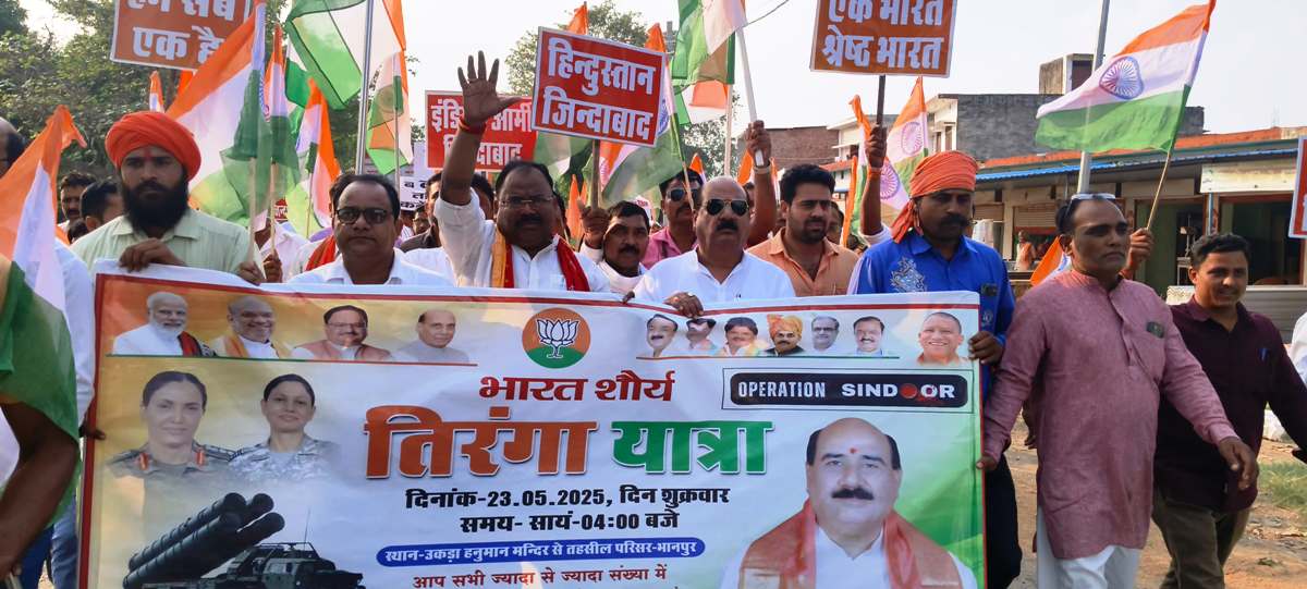 बस्ती। शुक्रवार को सेना के पराक्रम और ऑपरेशन सिन्दूर की सफलता पर नगर पंचायत भानपुर से उकड़ा पोखरे और भानपुर तहसील परिसर तक भारतीय जनता पार्टी के पूर्व जिलाध्यक्ष और राम नगर ब्लाक प्रमुख रामनगर यशकान्त सिंह की अगुवायी में भारत शौर्य तिरंगा यात्रा निकाली गयी।