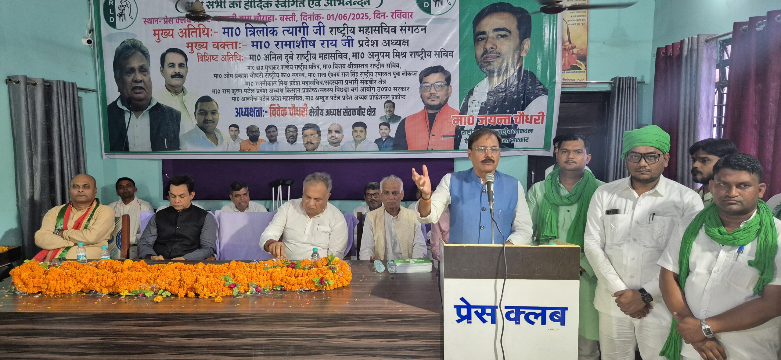 बस्ती । रविवार को राष्ट्रीय लोकदल की क्षेत्रीय समीक्षा बैठक और सदस्यता अभियान पर प्रेस क्लब सभागार में विचार विचार विमर्श किया गया। मुख्य अतिथि राष्ट्रीय महासचिव संगठन त्रिलोक त्यागी ने कहा कि रालोद पूर्व प्रधानमंत्री चौधरी चरण सिंह के पद चिन्हों पर चलते हुये किसानों, कमेरा वर्ग के हितों के लिये राष्ट्रीय अध्यक्ष एवं केन्द्रीय मंत्री जयन्ती चौधरी के मार्ग दर्शन में निरन्तर गतिशील है। उन्होने क्षेत्रीय पदाधिकारियों से सांगठनिक स्थिति पर जानकारी प्राप्त करते हुये कहा कि मजबूत संगठन से ही राजनीतिक, सामाजिक, आर्थिक, शैक्षणिक लक्ष्य पूरे होंगे, इसके लिये हम सबको मिलकर 2027 के विधानसभा चुनाव से पूर्व मजबूत संगठन बनाना होगा।