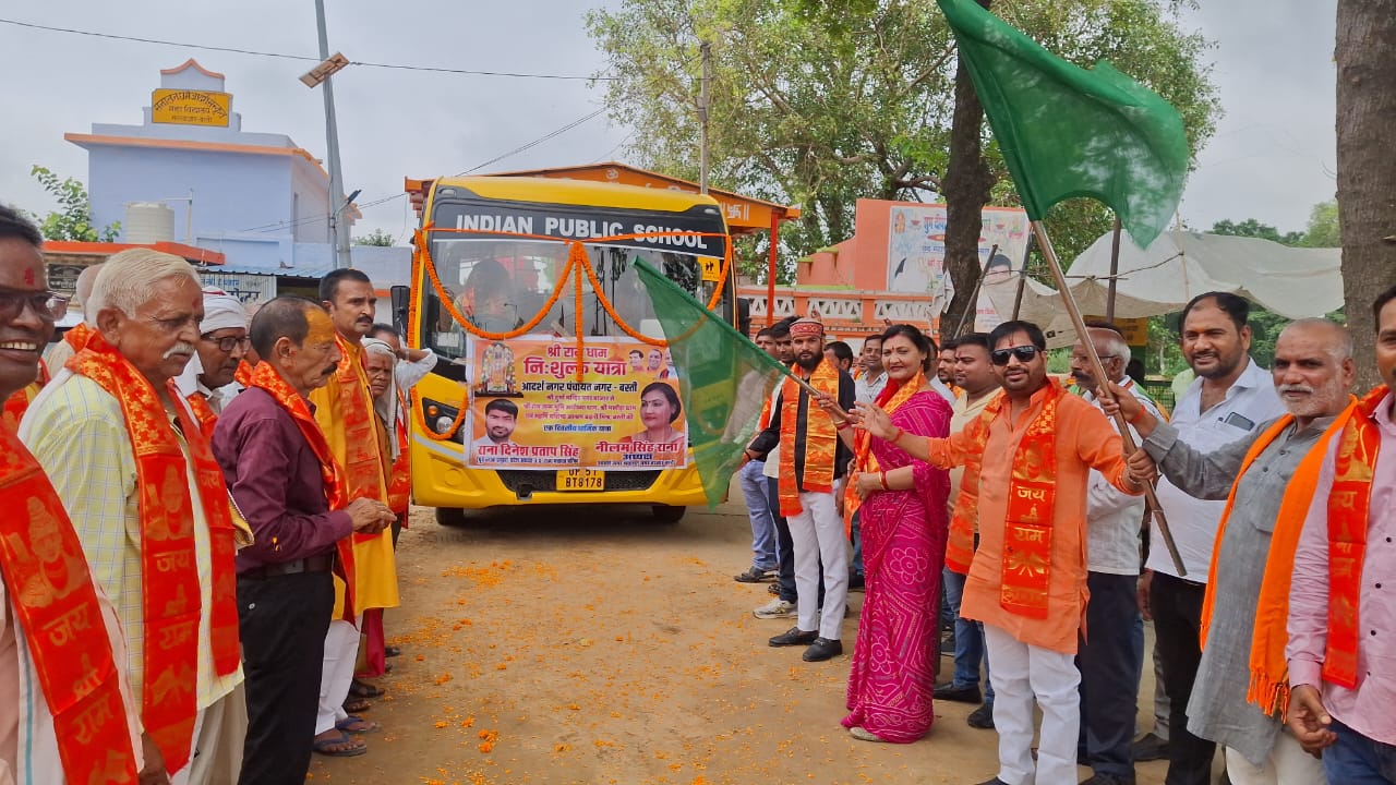 बस्ती- नगर पंचायत नगर में श्री राम धाम निशुल्क यात्रा शुरू हुई । 36 श्रद्धालुओं के दल को अध्यक्ष नीलम सिंह राना ने झंडी दिखा कर यात्रा की शुरुआत किया। अध्यक्ष और सभासदों ने यात्रियों पर पुष्प वर्षा कर स्वागत किया। श्री दुर्गा मन्दिर के पुजारी ने सभी श्रद्धालुओं को टीका चंदन लगाकर अभिवादन किया। अध्यक्ष नीलम सिंह राना ने कहा कि नगर पंचायत के 60 वर्ष से अधिक आयु के श्रद्धालुओं को ये सुविधाएं दी गई हैं। प्रत्येक माह के अन्तिम रविवार को यह यात्रा निरन्तर चलेगी। नगर श्री दुर्गा मंदिर से यात्रा शुरू होकर अयोध्या धाम स्थित श्री हनुमान गढ़ी, श्री राम जन्मभूमि और बस्ती के मखौड़ा धाम और महर्षि वशिष्ठ आश्रम बढ़नी मिश्र होते हुए पुनः श्रद्धालु नगर पंचायत वापस आएंगे। यात्रियों की सुविधा के लिए नगर पंचायत के 06 कर्मयोगियों की टीम लगाई गई है। उत्तर प्रदेश राज्य पंचायत परिषद के प्रदेश अध्यक्ष राना दिनेश प्रताप सिंह ने कहा कि नगर देश की पहली नगर पंचायत है जहां एक दर्जन अनूठी योजनाएं संचालित की जा रही है। उन्होंने नगर को देश का एक मॉडल नगर पंचायत बनाने में सभी से सहयोग की अपील किया। मंडल अध्यक्ष विजय भान सिंह ने इस योजना को अनुकरणीय बताते हुए यात्रियों को शुभकामनाएं दिया। इस अवसर पर सभासद दिनेश चौरसिया, वीरेंद्र कुमार, संदीप कुमार, राम सजन यादव, तुलसी राम सहित बड़ी संख्या में भाजपा कार्यकर्ता और स्थानीय लोग मौजूद रहे।