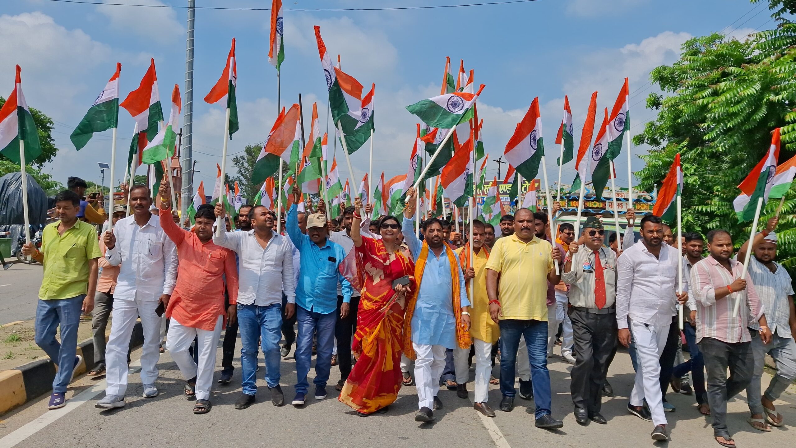 बस्ती, 14 अगस्त। स्वाधीनता दिवस की पूर्व संध्या पर आज नगर पंचायत नगर में आपरेशन सिन्दूर की स्मृति में तिरंगा झंडा स्थापित हुआ। टाटा मोटर्स के सहयोग से अमर बलिदानी राजा उदय प्रताप नारायण सिंह मूर्ति स्थल के पुनरुद्धार कार्य का लोकपर्ण हुआ। इसके पूर्व श्री दुर्गा मन्दिर परिसर से नगर तिराहे तक भव्य तिरंगा यात्रा निकाली गई। हाथों में तिरंगा लिए भारत माता की जय और बंदे मातरम का जयघोष करते हुए सैकड़ों लोगों ने अमर शहीद उदय प्रताप सिंह को माल्यार्पण कर जयकारे लगाए । मुख्य अतिथि नगर पंचायत अध्यक्ष नीलम सिंह राना ने लोकार्पण समारोह में कहा कि यहां स्थापित तिरंगा झंडा ऑपरेशन सिन्दूर के सफलता को सदैव याद दिलाता रहेगा। उन्होंने कहा कि प्रधानमंत्री नरेन्द्र मोदी के दृढ़ इच्छा शक्ति और सेना के पराक्रम की गौरव गाथा पूरी दुनिया ने देख लिया है। उन्होंने अमर शहीद स्थल के विकास में आर्थिक सहयोग के लिए टाटा मोटर्स के संस्थापक अखिलेश दूबे का आभार जताया। विशिष्ट अतिथि टाटा मोटर्स के संस्थापक अखिलेश दूबे और प्रतिष्ठित चिकित्सक डॉ० आर के यादव ने कहा कि देश के लिए हम सभी को अपना योगदान देना चाहिए। उत्तर प्रदेश राज्य पंचायत परिषद के प्रदेश अध्यक्ष राना दिनेश प्रताप सिंह ने कहा कि नगर देश की पहली नगर पंचायत है जहां ऑपरेशन सिन्दूर की स्मृति में तिरंगा झंडा स्थापित किया गया है। उन्होंने इसे अनुकरणीय पहल बताते हुए अमर बलिदानी की धरती के चतुर्दिक विकास में सभी का सहयोग मांगा। इस अवसर पर सूबेदार मेजर चंद्र शेखर शुक्ल, भाजपा मण्डल अध्यक्ष विजय भान सिंह, अमरेश पांडेय, पंकज त्रिपाठी, राम कृपाल यादव, शिवम कसौधन, सत्यम राम निषाद, राजेश पाण्डेय, अखिलेश यादव, तुलसीराम, संजय सोनकर, नियाज़ अहमद, विजय साहनी, दिनेश चौरसिया, विजय जायसवाल, राम सजन यादव, बिंदू लाल, यशराज , वीरेन्द्र कुमार, संदीप कुमार, वीरेंद्र कुमार, डॉ अनिल श्रीवास्तव, राकेश्याम जायसवाल, संजय कसौधन, प्रिंस ससौधन, राम नारायण यादव, दिवाकर पांडेय, मकरंद पाण्डेय, रणविजय गौतम सहित बड़ी संख्या में लोग सम्मिलित हुए।