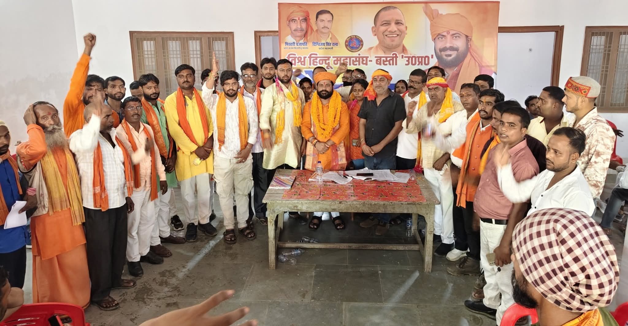 बस्ती । विश्व हिन्दू महासंघ की बैठक रविवार को जिलाध्यक्ष अखिलेश सिंह की अध्यक्षता में रंजीत चौराहे के निकट एक हाल में सम्पन्न हुई। बैठक में निर्णय लिया गया कि राष्ट्रसंत अवेद्यनाथ की पुण्य तिथि 15 सितम्बर को मनायी जायेगी। कार्यक्रम में उनके योगदान पर विचार विमर्श के साथ ही अनेक प्रान्तीय पदाधिकारी, संत हिस्सा लेंगे। बैठक में हिन्दूओं के उत्पीड़न, गोकशी रोकने आदि के सवालों को लेकर चर्चा के साथ ही श्री भद्रेश्वरनाथ कारीडोर निर्माण का निर्णय लिये जाने पर मुख्यमंत्री योगी आदित्यनाथ के प्रति आभार व्यक्त किया गया।