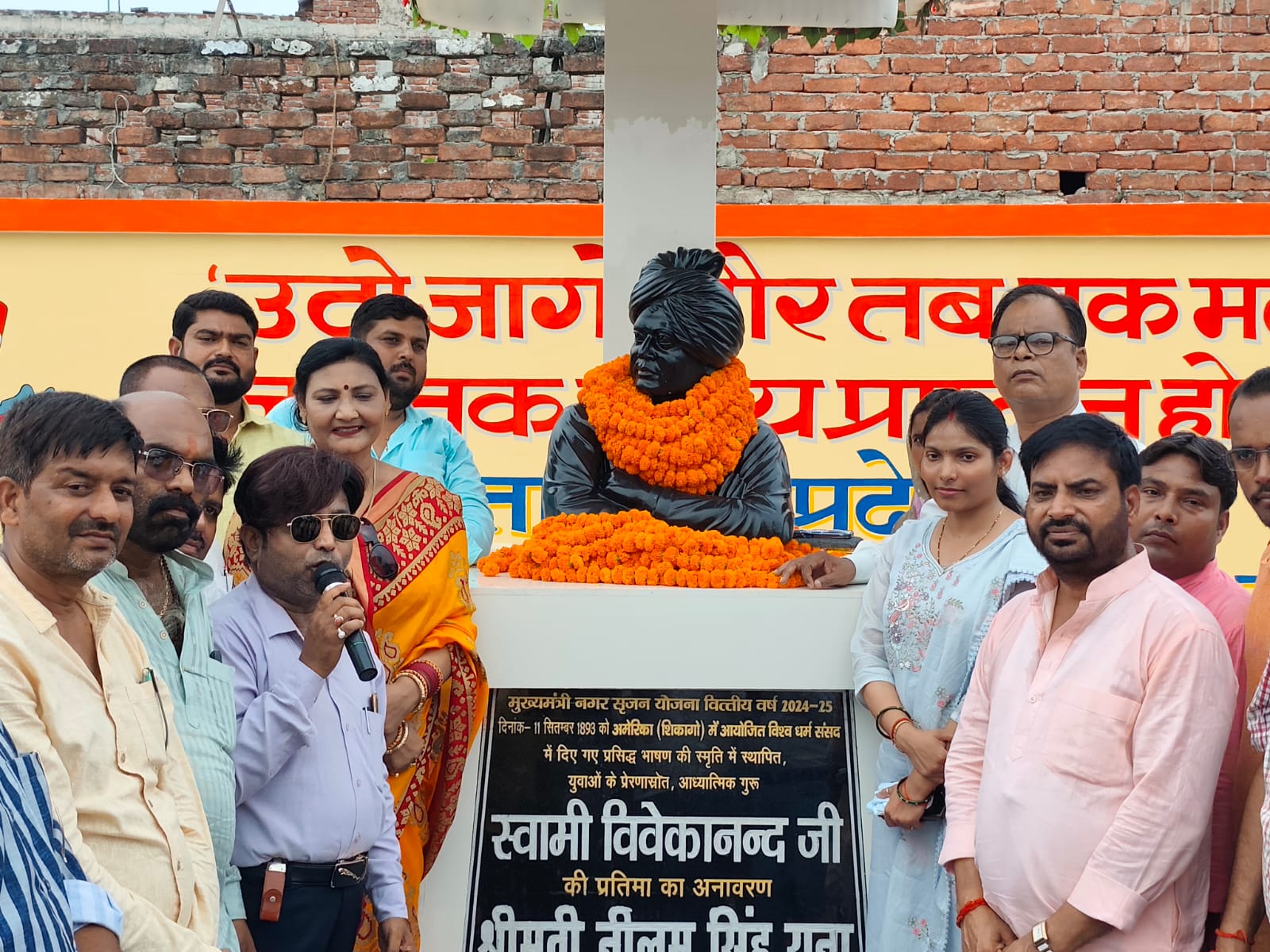 बस्ती, 11 सितम्बर। नगर पंचायत नगर में स्वामी विवेकानन्द की प्रतिमा स्थापित हुई। बृहस्पतिवार को अध्यक्ष नीलम सिंह राना ने समारोह पूर्वक प्रतिमा का अनावरण किया। उन्होंने स्वामी विवेकानंद जी को युग पुरुष बताते हुए कहा कि उनके विवार युवाओं के लिए सदैव प्रेरणाश्रोत रहेंगे। कहा देश की समृद्ध विरासत को सम्मान देना नगर पंचायत का दायित्व है। उन्होंने नगर को आदर्श नगर पंचायत बनाने के बाद इसे राष्ट्रीय मानचित्र पर स्थापित करने का दृढ़ संकल्प दोहराया। उत्तर प्रदेश राज्य पंचायत परिषद के प्रदेश अध्यक्ष राना दिनेश प्रताप सिंह ने कहा कि सन 1893 में अमेरिका के शिकागो में विश्व धर्म संसद में स्वामी विवेकानन्द जी द्वारा दिए गए प्रसिद्ध भाषण की स्मृति में उसी तिथि पर प्रतिमा स्थापित करना अविस्मरणीय कदम है। देश के प्रधानमंत्री नरेंद्र मोदी जी के विकसित भारत संकल्प को पूरा करने के लिए विवेकानंद जी की सूक्तियां प्रासंगिक है ।उन्होंने कहा कि महापुरुषों के प्रतीक चिन्हों और प्रतिमाओं की स्थापना हमारी पीढ़ियों को गौरवान्वित करता रहेगा। श्री राना ने कहा कि अमर बलिदानी स्थली नगर में जन सेवा का अवसर मिलना सौभाग्य की बात है। । अधिशाषी अधिकारी श्रृष्टि सिंह ने सभी का आभार जताते हुए कहा कि नगर पंचायत नगर शासन की मंशा के अनुरूप पात्रों को लाभान्वित कराने हेतु कृत संकल्पित है। इस अवसर पर देवेश धर द्विवेदी, इष्टदेव धर द्विवेदी, कायस्थ वाहिनी के संस्थापक पंकज भैया, चित्रांश क्लब के अध्यक्ष राजेश चित्रगुप्त, कायस्थ सेवा ट्रस्ट के जिला अध्यक्ष मुकेश श्रीवास्तव, सामाजिक सेवा संस्था चित्रांश क्लब के जिला अध्यक्ष शतेंद्र श्रीवास्तव, अश्वनी श्रीवास्तव,कृष्ण कुमार प्रजापति, मयंक श्रीवास्तव, मनीष श्रीवास्तव, अजय श्रीवास्तव, सभासद विजय जायसवाल, विजय साहनी, राजेश पाण्डेय, दिनेश चौरसिया, संजय सोनकर, सत्यराम निषाद, बिन्दु लाल, अखिलेश यादव, संदीप कुमार, राम सजन यादव, यशराज के के, पप्पू सिंह, चंद्र मौली धर द्विवेदी, सूरज द्विवेदी, अनुराग दूबे, अतुल दुबे, जगदीश पांडेय, शतीश मिश्र, प्रदीप निषाद, राम बरन भारती , राकेश पाण्डेय सहित सैकड़ों लोग मौजूद रहे। संचालन प्रसिद्ध भजन गायक अविनाश श्रीवास्तव, ने किया। इसके पूर्व सैकड़ों लोगों ने स्वामी विवेकानन्द की मूर्ति पर माल्यार्पण कर उनके संदेश को जन जन तक पहुंचाने का संकल्प लिया।