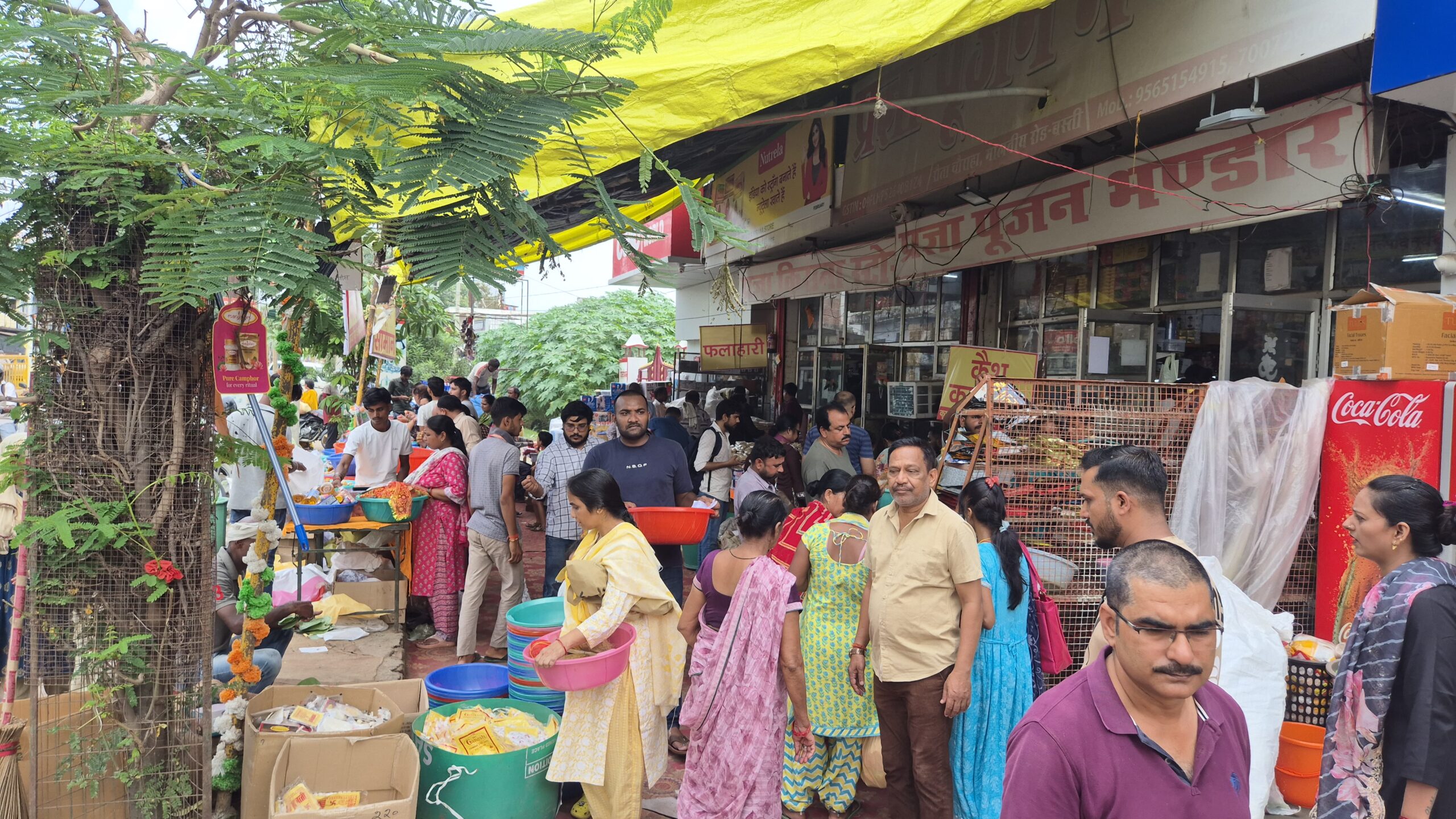 शारदीय नवरात्र के अवसर पर पूजन सामग्री खरीदने हेतु भक्तों की लगी भारी भीड़