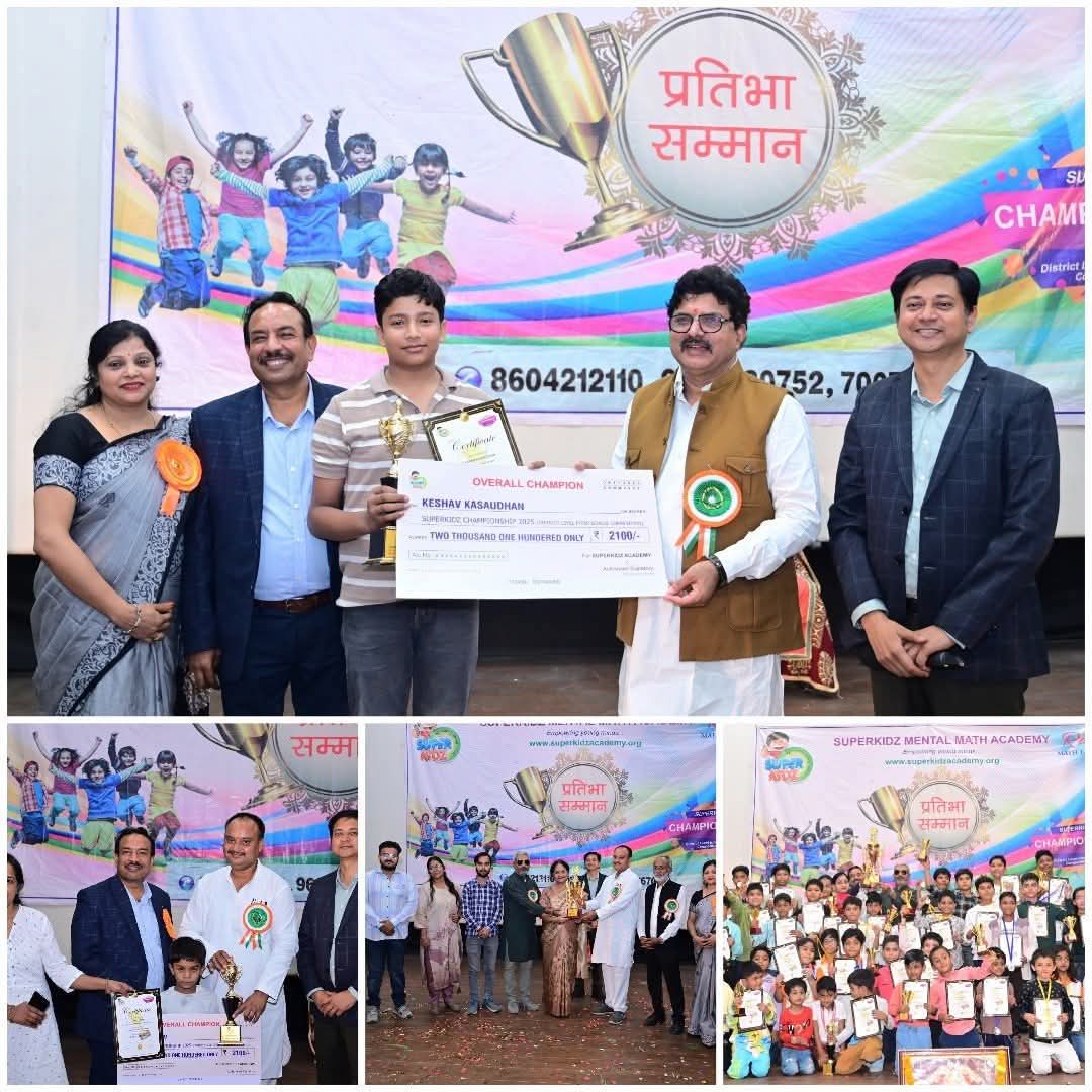 बस्ती। सुपरकिड्ज एकेडमी द्वारा आयोजित जनपद स्तरीय चैंपियनशिप 2025 के प्रतिभागियों को पुरस्कृत करने के लिए अटल बिहारी वाजपेई ऑडिटोरियम में भव्य प्रतिभा सम्मान समारोह का आयोजन किया गया, जिसमें एलकेजी से 8वीं तक के प्रतिभागियों को ओवरऑल चैंपियन, चैंपियन, गोल्ड, सिल्वर एवं मेरिट वर्ग में ट्रॉफी मेडल नगद पुरस्कार देकर सम्मानित किया गया।