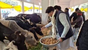 बस्ती। भारतीय जनता पार्टी युवा मोर्चा के पूर्व राष्ट्रीय कार्यकारिणी सदस्य अभिनव उपायाय ने रविवार को नगर पालिका परिषद के परिसर में स्थित कान्हा गोशाला पर स्वच्छता अभियान चलाने के बाद गोवंश को गुड और हरा चारा खिलाया और हरा चारा गौशाला को भेंट किया। कहा कि कडाके की ठंड में कोई गोवंश ठंड और भूख का शिकार न होने पाये। उन्होने युवाओं का आवाहन किया कि वे अपने माता-पिता परिजनों, खुद अपने जन्म दिन व अन्य प्रमुख पर्व त्यौहारों पर गोवंश की सेवा करें। शास्त्रों में भी कहा गया है कि गोवंश की सेवा से पुण्य लाभ के साथ ही जीवन बदलता है। कहा कि केन्द्र और प्रदेश की सरकार निरन्तर गौशाला की स्थापना और गोवंश की रक्षा की दिशा में प्रतिबद्ध है। इस दिशा में समाज के सक्रिय लोगों को अपनी भूमिका निभानी होगी।