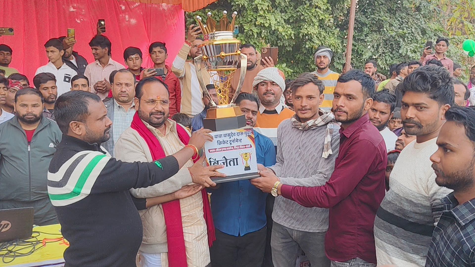 बस्ती। पिपरा गौतम क्षेत्र में आयोजित बाबा बासुदेव युवा क्रिकेट टूर्नामेंट का भव्य और उत्साहपूर्ण समापन हुआ। इस टूर्नामेंट में क्षेत्रीय युवाओं ने बढ़-चढ़कर हिस्सा लिया और अपने खेल कौशल का शानदार प्रदर्शन किया। पूरे आयोजन के दौरान दर्शकों में जबरदस्त उत्साह देखने को मिला, वहीं फाइनल मुकाबला बेहद रोमांचक रहा। उत्कृष्ट खेल का प्रदर्शन करते हुए केजीएन टीम ने फाइनल मैच में जीत दर्ज कर खिताब अपने नाम किया।