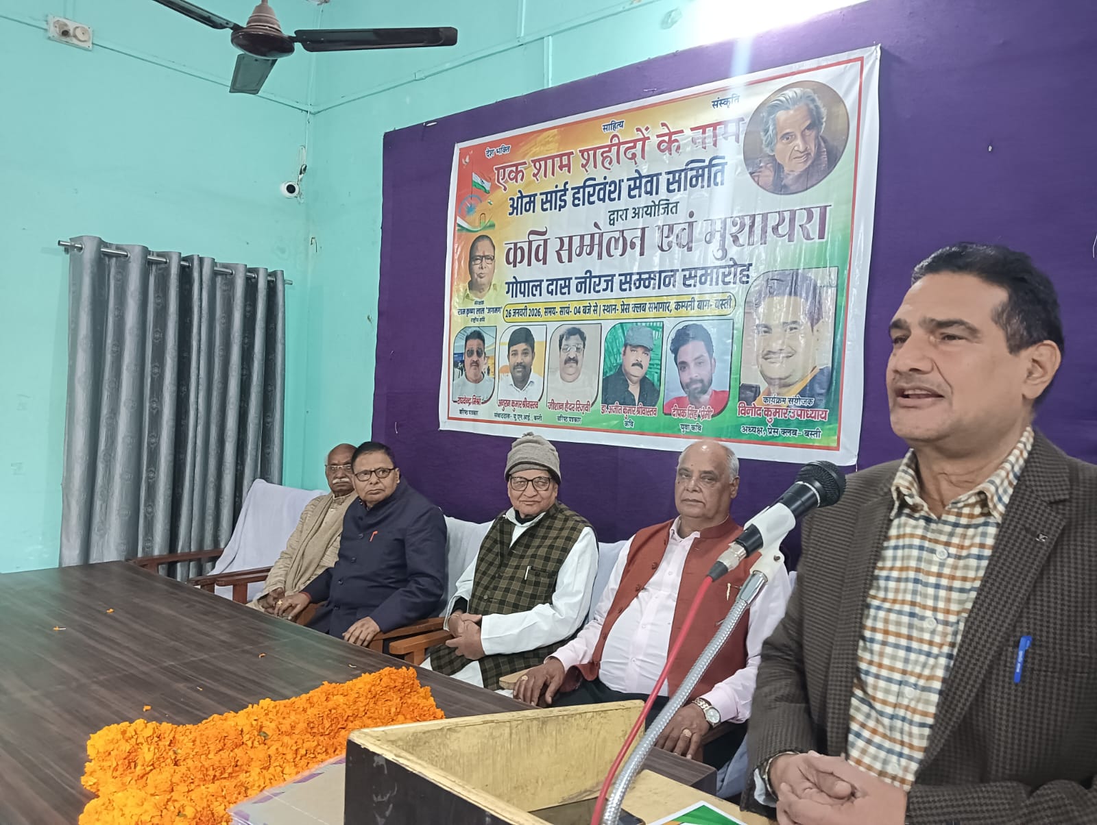 साहित्यकारो ने अपनी रचनाओं के माध्यम से देश भक्ति की भावना को प्रबल किया है और समाज को जागरूक करने का कार्य किया है। गणतन्त्र दिवस के अवसर पर प्रेस क्लब के सभागार मे ओम सांई हरिवशं सेवा समिति के तत्वाधान में आयोजित कवि सम्मलेन एवं गोपाल दास नीरज सम्मान समारोह को सम्बोधित करते हुए उन्होने कहा कि जब देश गुलामी की जंजीरो से जकड़ा हुआ था तब कवियों ने लोगो के हृदय में स्वतन्त्रता की चेतना जगाई जिससे आम-जनमानस एक जुट होकर आजादी की लड़ाई को मजबूती प्रदान किया। वरिष्ठ पत्रकार कृष्ण देव मिश्र ने कहा कि साहित्य समाज का दर्पण होता है और कवियों की रचनाएं आज भी नई पीढ़ी को