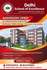 बस्ती।शिक्षा के क्षेत्र में निरंतर नवाचार और उत्कृष्ट परिणामों के लिए पहचाने जाने वाले दिल्ली स्कूल ऑफ एक्सीलेंस में आगामी अप्रैल माह से कक्षा 9 से 12 तक के विद्यार्थियों के लिए एक विशेष शैक्षणिक पहल की शुरुआत की जा रही है। इस पहल के अंतर्गत विद्यालय में नियमित Academic पाठ्यक्रम के साथ-साथ JEE (Main) एवं NEET जैसी प्रतिष्ठित राष्ट्रीय स्तर की प्रतियोगी परीक्षाओं की सुदृढ़, व्यवस्थित एवं लक्ष्य-आधारित तैयारी कराई जाएगी।