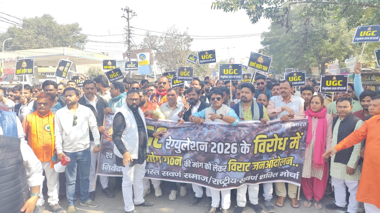 विश्वविद्यालय अनुदान आयोग (UGC) द्वारा अधिसूचित “Promotion of Equity in Higher Education Institutions Regulations, 2026” के विरोध में आज राष्ट्रीय सवर्ण शक्ति मोर्चा के तत्वावधान में राजकीय इंटर कॉलेज (GIC) मैदान से शास्त्री चौक तक एक विशाल, शांतिपूर्ण एवं अनुशासित पैदल मार्च का आयोजन किया गया।