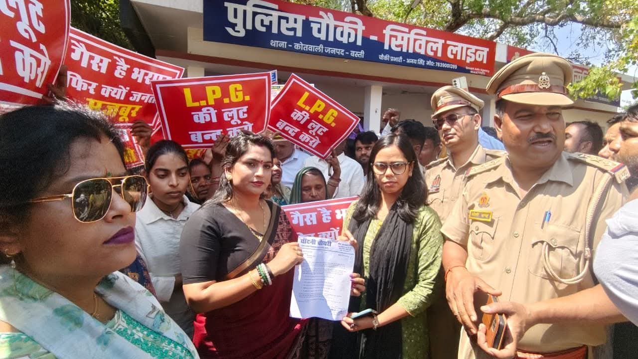 बस्ती। घरेलू रसोई गैस की बढ़ती किल्लत और कालाबाजारी के खिलाफ आज शहर में जोरदार प्रदर्शन देखने को मिला। 309 विधानसभा क्षेत्र रुधौली की प्रत्याशी चाँदनी चौधरी, पत्नी मनोज चौधरी, के नेतृत्व में सैकड़ों महिलाओं ने जिलाधिकारी कार्यालय पहुंचकर जोरदार प्रदर्शन किया और अपनी समस्याओं को लेकर ज्ञापन सौंपा।