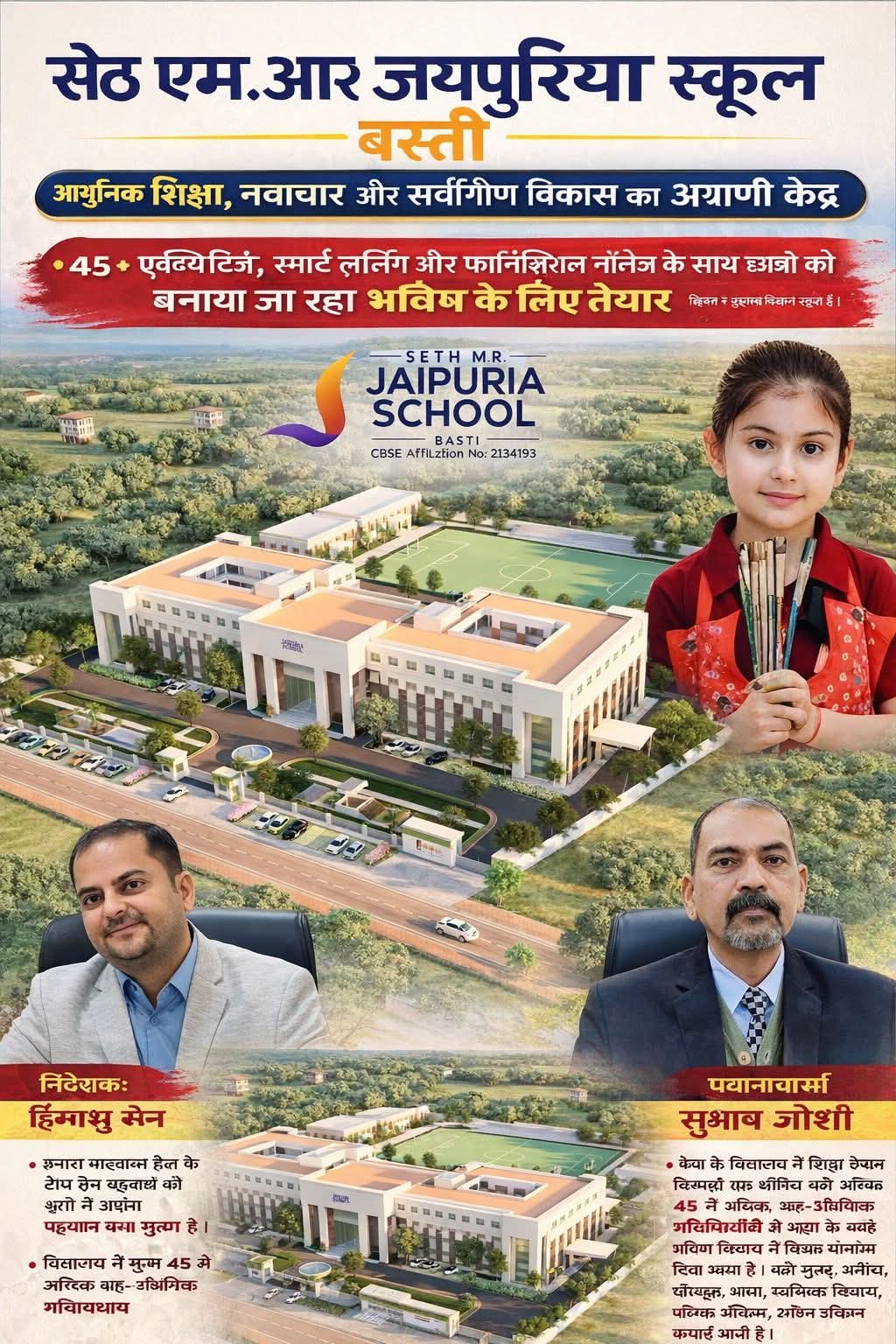 बस्ती। जिले का प्रतिष्ठित शिक्षण संस्थान सेठ एम.आर. जयपुरिया स्कूल आज शिक्षा के क्षेत्र में अपनी उत्कृष्ट गुणवत्ता और आधुनिक शिक्षण पद्धतियों के लिए देशभर में पहचान बना चुका है। यह विद्यालय देश के टॉप टेन स्कूलों की श्रेणी में शामिल होकर छात्रों को केवल शैक्षणिक ही नहीं, बल्कि व्यावहारिक और जीवनोपयोगी शिक्षा भी प्रदान कर रहा है।
