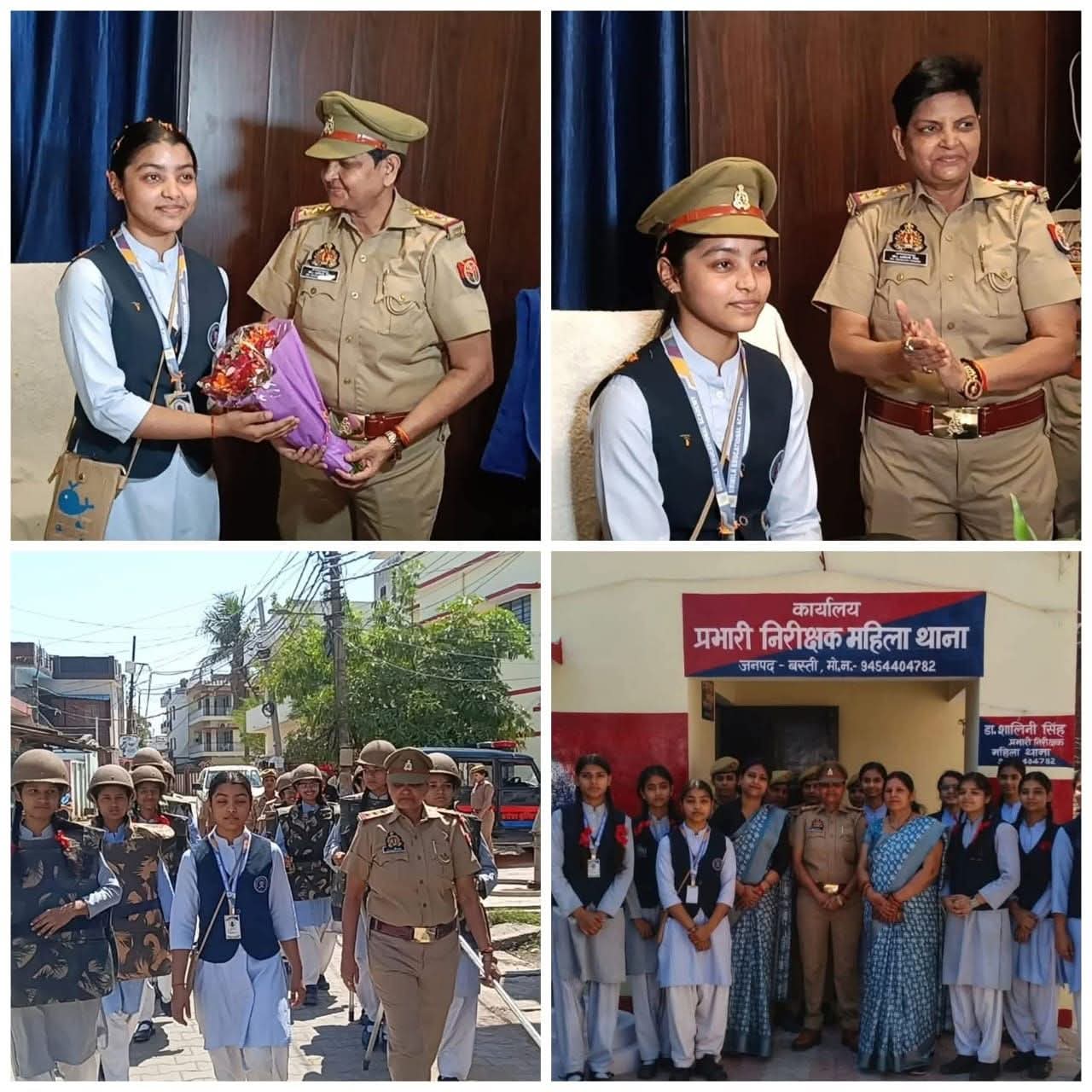 बस्ती: पुलिस अधीक्षक डा0 यशवीर सिंह के नेतृत्व में प्रभारी निरीक्षक महिला थाना द्वारा उर्मिला एजुकेशन एकेडमी की दसवीं की छात्रा नित्या कसौधन को एक दिन की थानेदार बनाया गया। प्रभारी निरीक्षक महिला थाना डॉ शालिनी सिंह द्वारा नित्या कसौधन को पुष्प गुच्छ देकर स्वागत किया गया। तथा प्रभारी निरीक्षक की कुर्सी पर बैठाया गया, प्रभारी निरीक्षक के रूप में नित्या कसौधन ने महिला थाने के कार्यों को देखा कि किस प्रकार महिला थाने का कार्य किस प्रकार संपादित होते है। प्रभारी निरीक्षक के रूप में छात्रा द्वारा मालखाने का निरीक्षण, हवालात का निरीक्षण एवं मिशन शक्ति केन्द्र के कार्यों को देखा गया। प्रभारी निरीक्षक के रूप में थाने पर आए फरियादियो की फरियाद सुनी गई। इसके साथ ही 8 अन्य छात्राओ को क्रमशः एक छात्रा को दिवसाधिकारी, एक छात्रा को कंप्यूटर ऑपरेटर, एक छात्रा को मुंशी के रूप में नियुक्त किया गया। सिद्धि पाण्डेय को IGRS व परिधि पाण्डेय को CCTNS के कार्य से अवगत कराते हुए तथा 04 छात्राओं को हेल्पडेस्क की जिम्मेदारी दी गई। साथ ही छात्राओं को बॉडीप्रोटेक्टर, हेलमेट पहनाकर और डंडा देकर क्षेत्र भ्रमण कराया गया। जिसके साथ साइबर अपराधों, मिशन शक्ति केन्द्र, एंटी रोमियो स्क्वॉड की विधिवत जानकारी दी गई। इस अवसर पर महिला थाने का समस्त स्टॉप उपस्थित था। छात्राओं द्वारा बेहद प्रसन्नता प्रगट की गई। महिला थाने को कार्य प्रणाली को करीब से देखने का अवसर मिला। छात्राएं बेहद उत्साहित थी।