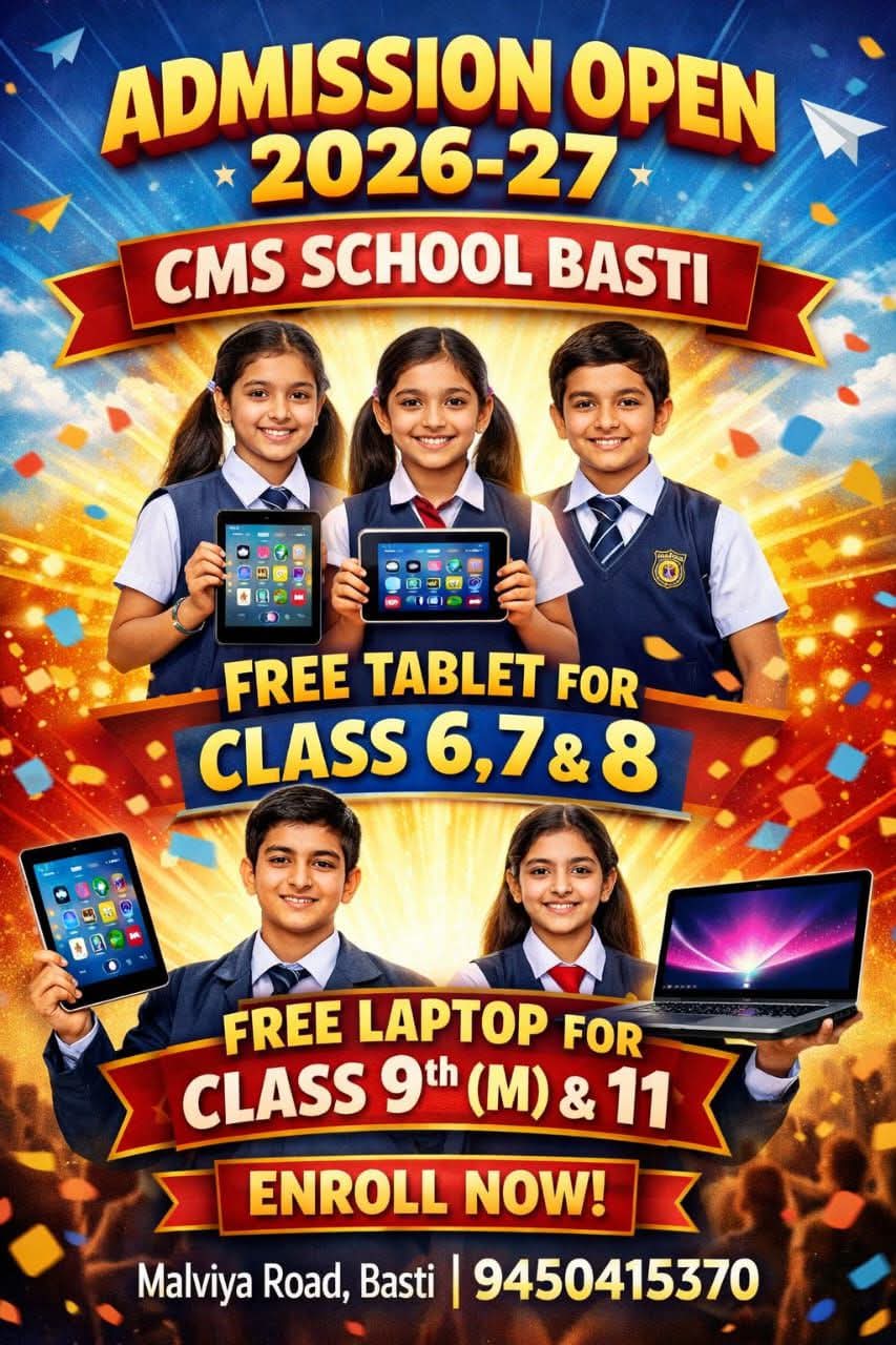 बस्ती। शिक्षा के क्षेत्र में एक नई पहल करते हुए CMS स्कूल, बस्ती ने शैक्षणिक सत्र 2026-27 के लिए प्रवेश प्रक्रिया शुरू कर दी है। आधुनिक शिक्षा को बढ़ावा देने के उद्देश्य से विद्यालय प्रबंधन ने छात्रों के लिए आकर्षक सुविधाओं की घोषणा की है, जिससे अभिभावकों और विद्यार्थियों में उत्साह देखा जा रहा है।