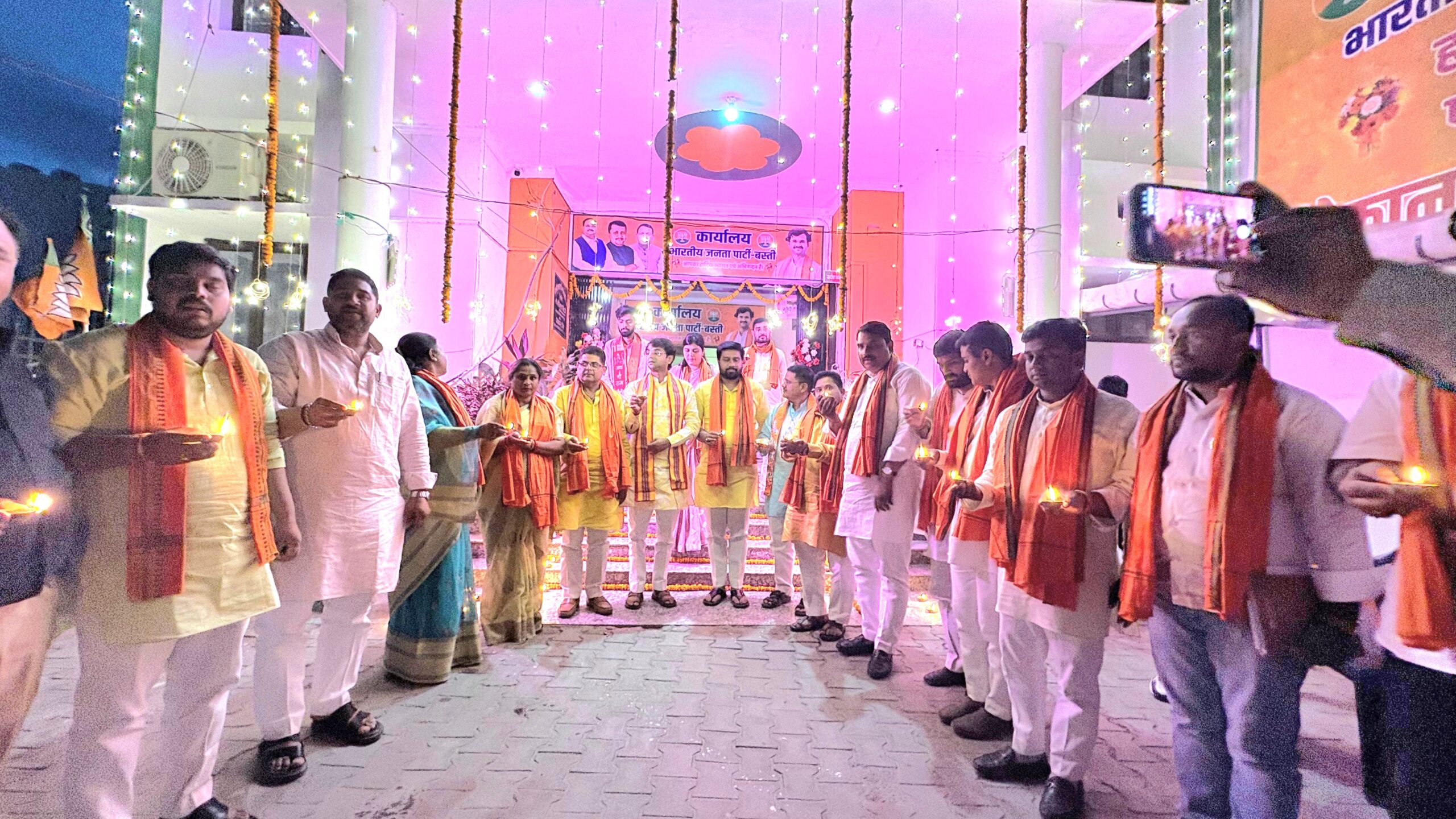 पूर्व संध्या पर जिला कार्यालय को पुष्पों एवं आकर्षक विद्युत सज्जा से सजाया गया। दीप प्रज्वलन कर स्थापना दिवस की पूर्व संध्या उत्साहपूर्वक मनाई गई तथा महिला पदाधिकारियों द्वारा कमल पुष्प की सुंदर रंगोली बनाकर कार्यक्रम की शोभा बढ़ाई गई।
