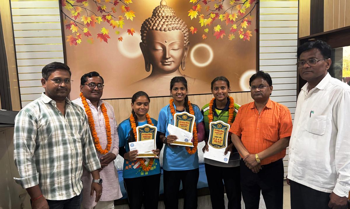बस्ती। शनिवार को  पटेल एस.एम.एच. हास्पिटल एण्ड आयुष पैरा मेडिकल कालेज गोटवा के    प्रबंधक वरिष्ठ चिकित्सक, समाजसेवी डा. वी.के. वर्मा ने खोखो इण्डिया खेल प्रतियोगिता में जूनियर नेशनल खिलाड़ी की विजेता खुशी वर्मा, रजत पदक विजेता अर्तिका मिश्रा और भार्गवी सिंह को प्रशस्ति पत्र, शील्ड और नकद सहयोग राशि देकर खिलाड़ियों का हौसला बढाया।