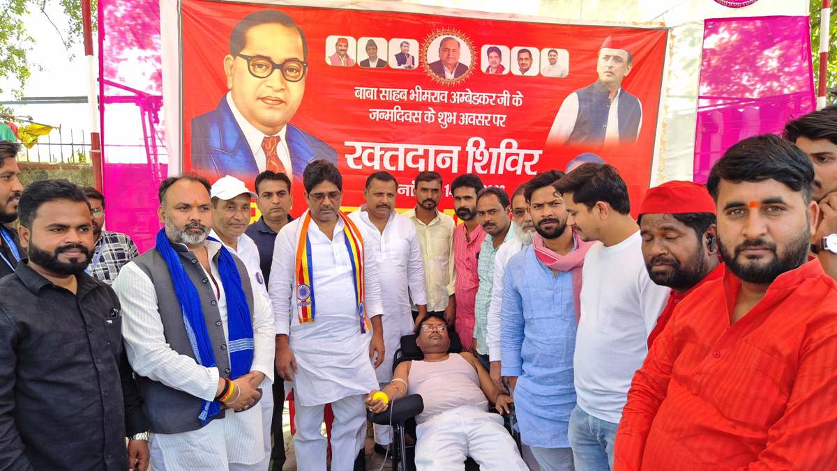 बस्ती। भारत रत्न बाबा साहब डॉ. भीमराव अम्बेडकर के जयंती अवसर पर मंगलवार को समाजवादी पार्टी नगर अध्यक्ष युनूस आलम के संयोजन में राजकीय इण्टर कॉलेज के निकट रक्तदान शिविर का आयोजन किया गया। उद्घाटन करते हुये सपा जिलाध्यक्ष एवं सदर विधायक महेन्द्रनाथ यादव ने कहा कि बाबा साहब की स्मृति में रक्तदान की पहल सराहनीय है। रक्तदान के द्वारा हम दूसरों की जान बचाने का माध्यम बनते हैं।
